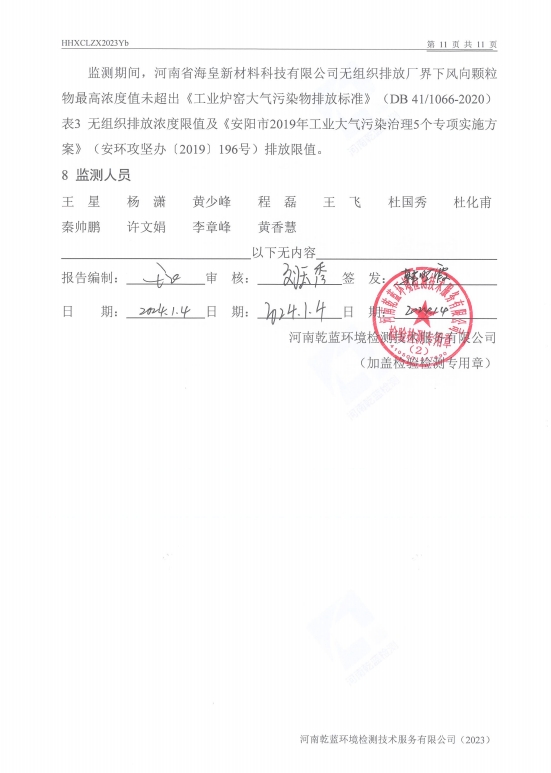 2023年下半年自行檢測報(bào)告