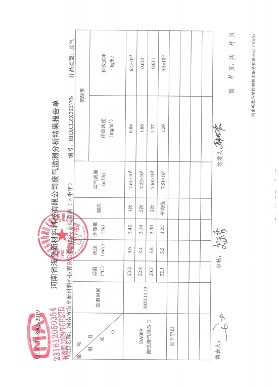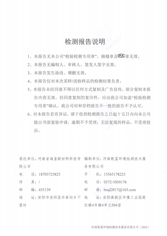 河南省海皇新材料科技有限公司2023年度危險(xiǎn)廢物信息一覽表