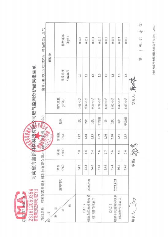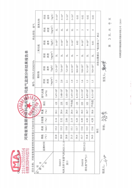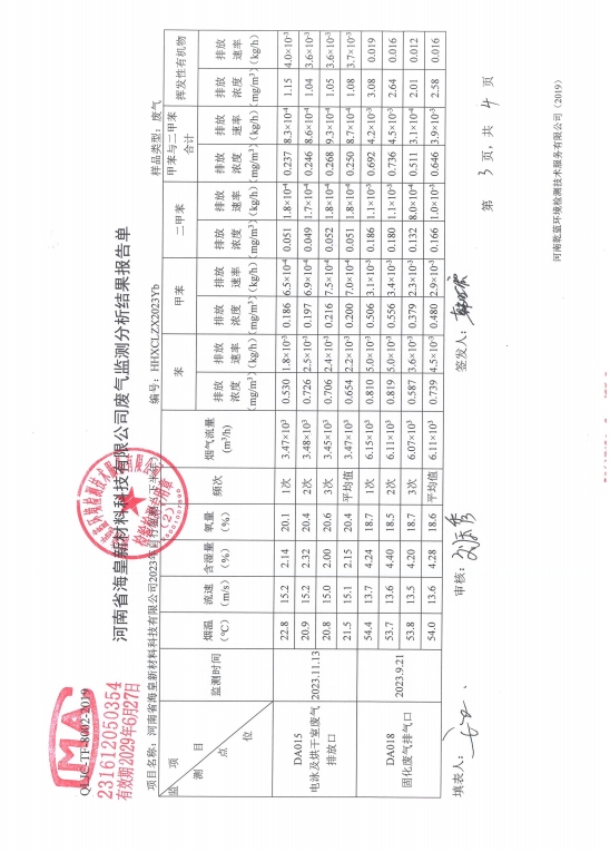 河南省海皇新材料科技有限公司2023年度危險(xiǎn)廢物信息一覽表