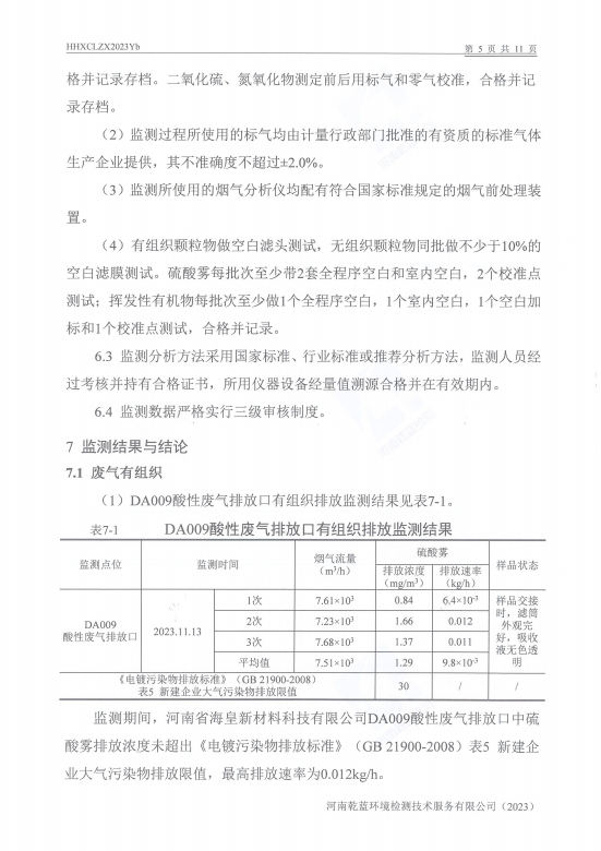 2023年下半年自行檢測報(bào)告